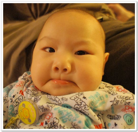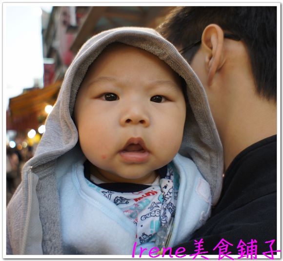 平常還挺愛坐推車的B仔,可能因為已經坐了兩小時的ㄅㄨㄅㄨ屁股痛痛吧~~來到夜市就不想坐了,把拔就只好邊抱邊逛嚕~~