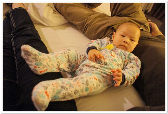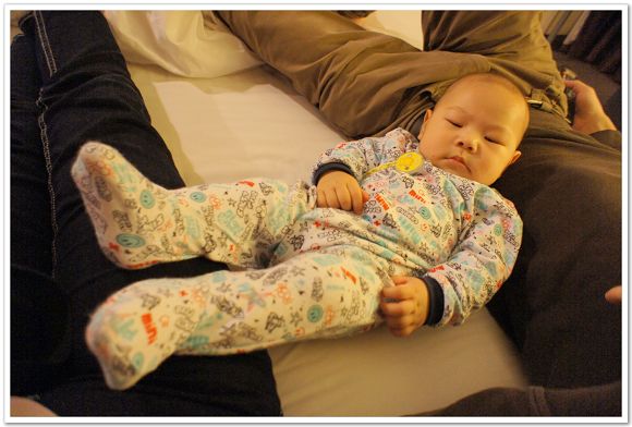 隨便晃了一下又回飯店打滾了,B仔在房間又表演扁嘴新招...